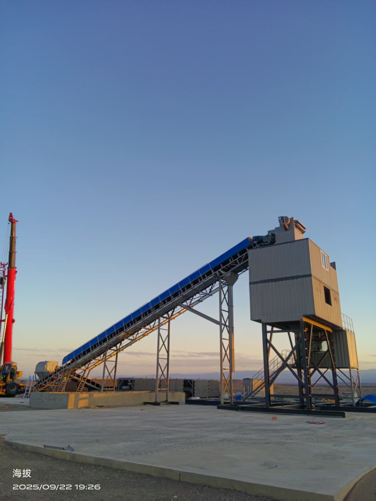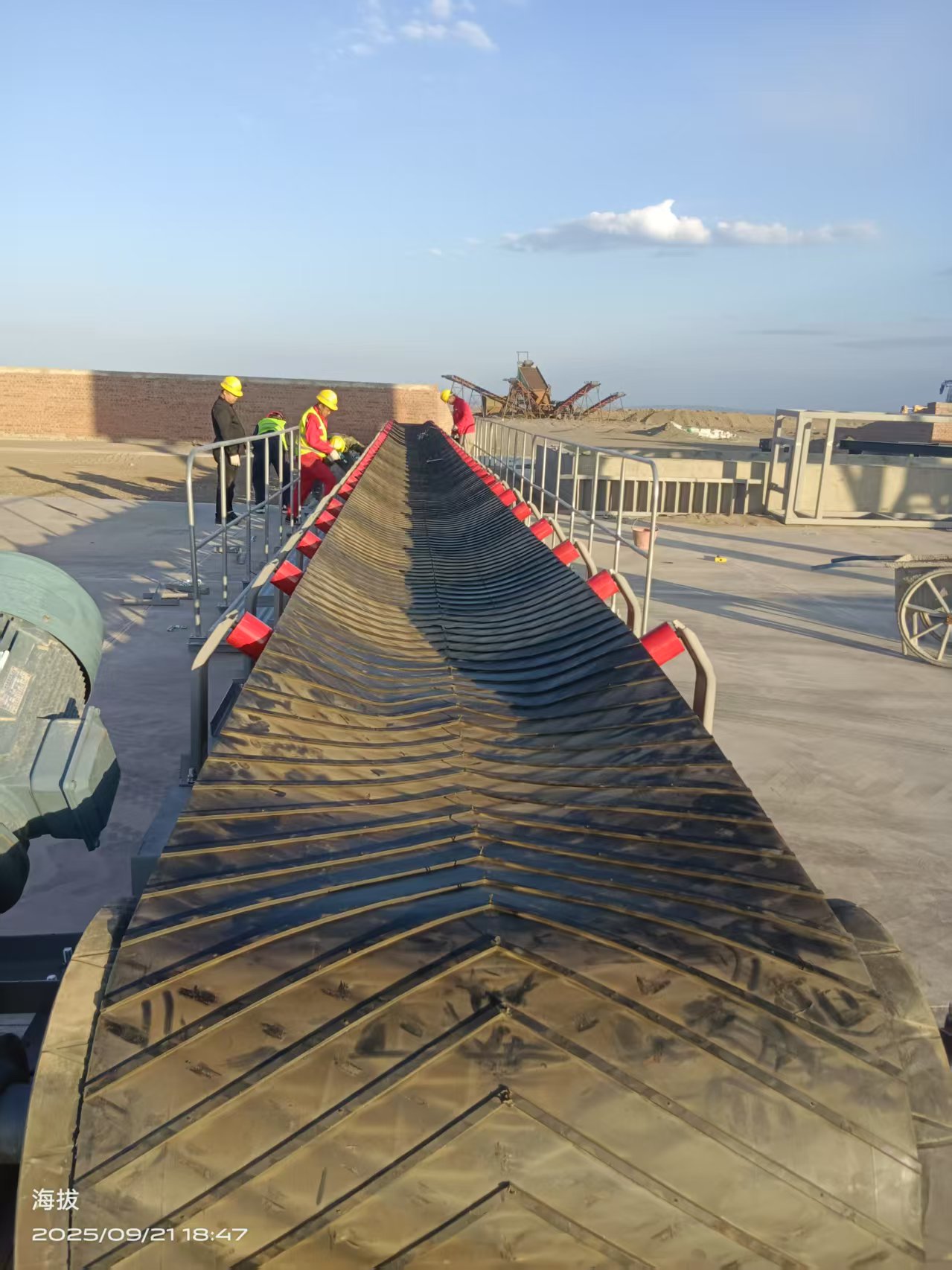 * **День 3 (сегодня):** Смонтирован защитный навес, установлены наклонный конвейер, загрузочный лоток и ленточный транспортер.